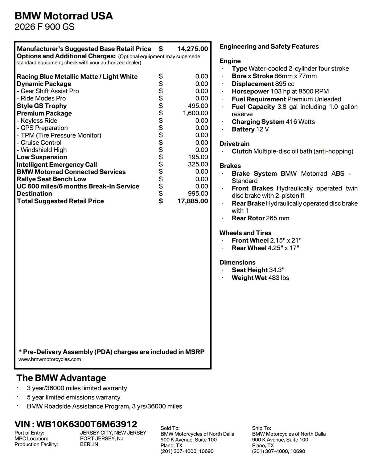 See Monroney label for complete equipment details.