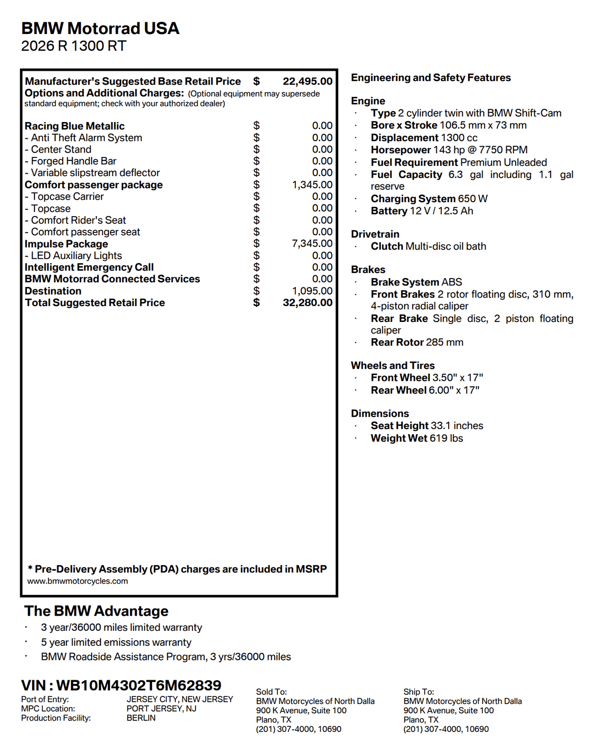 See Monroney label for complete equipment details.