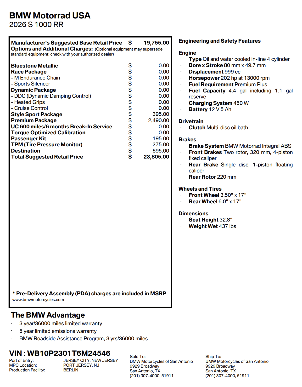 New 2026 BMW S 1000 RR Sport