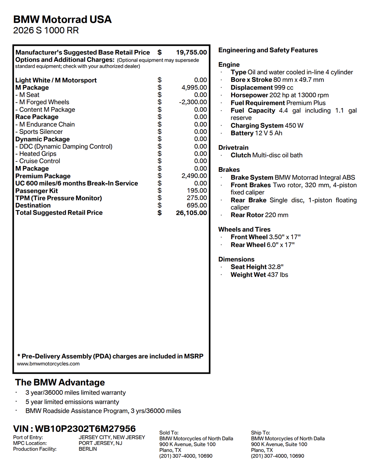 New 2026 BMW S 1000 RR M Package with Forged Wheels