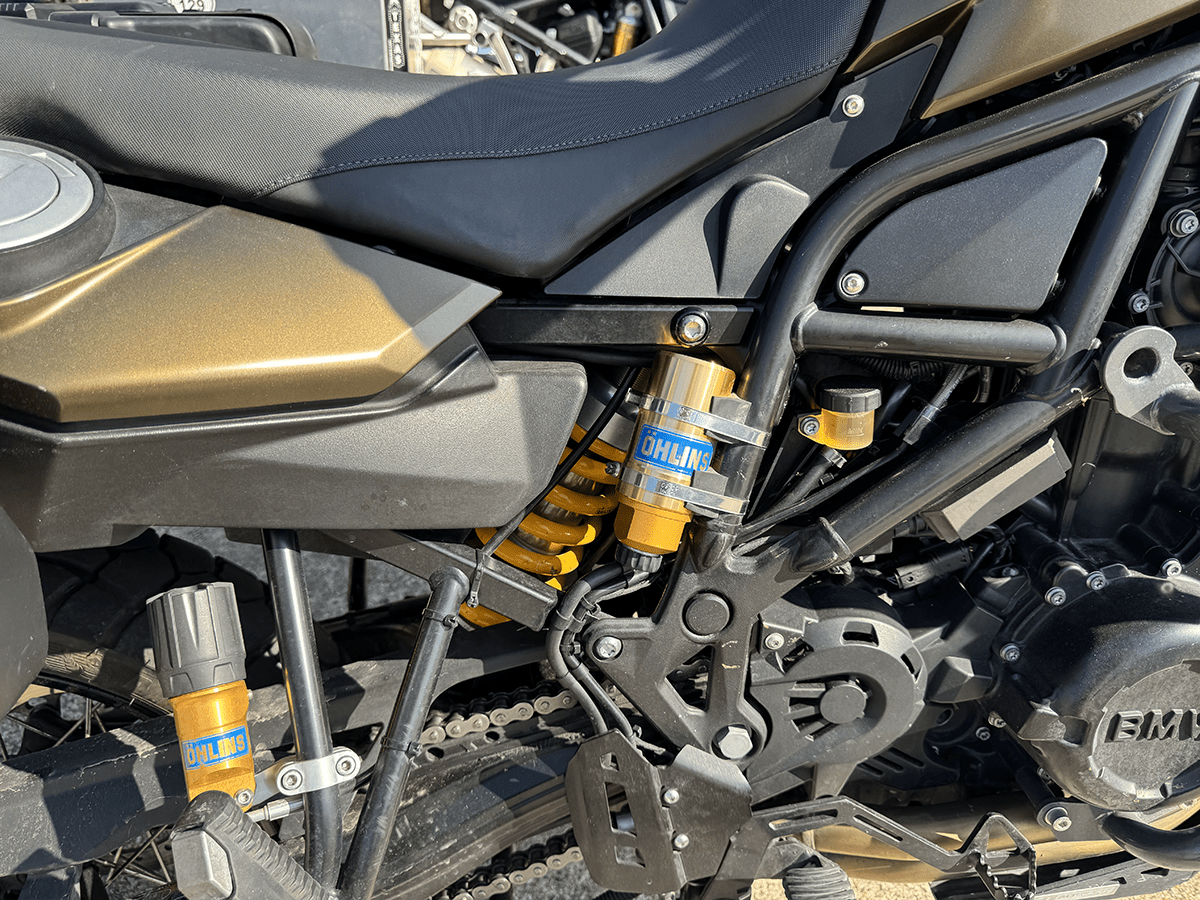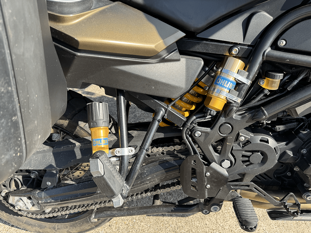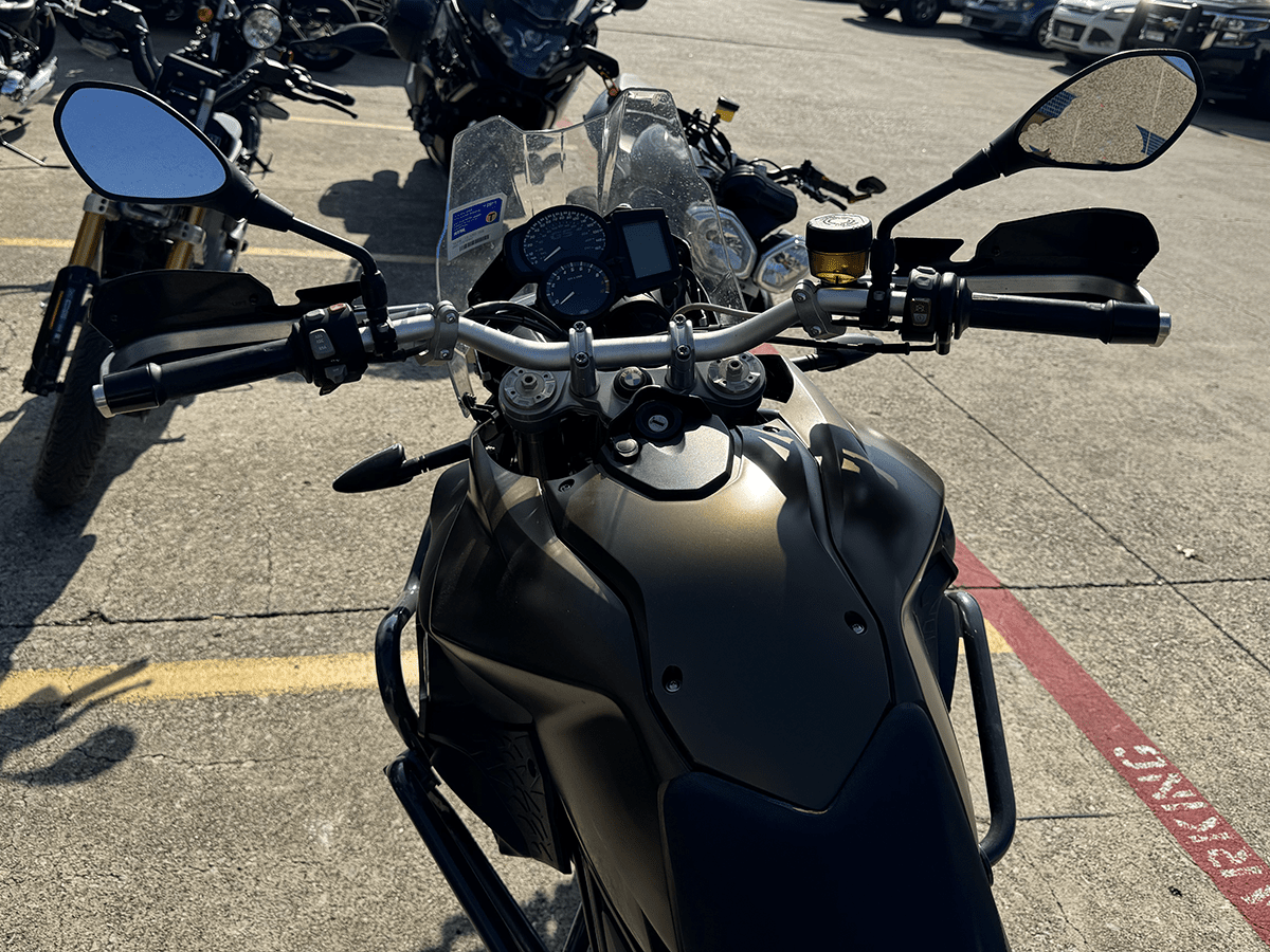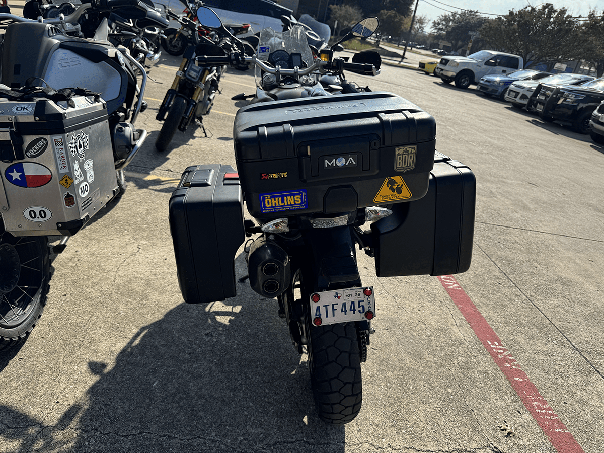 Well-equipped mid-sized ADV bike. Full set of factory hard cases, Ohlins suspension, really sturdy bodywork protection, and many more additions make this ready to GO!
